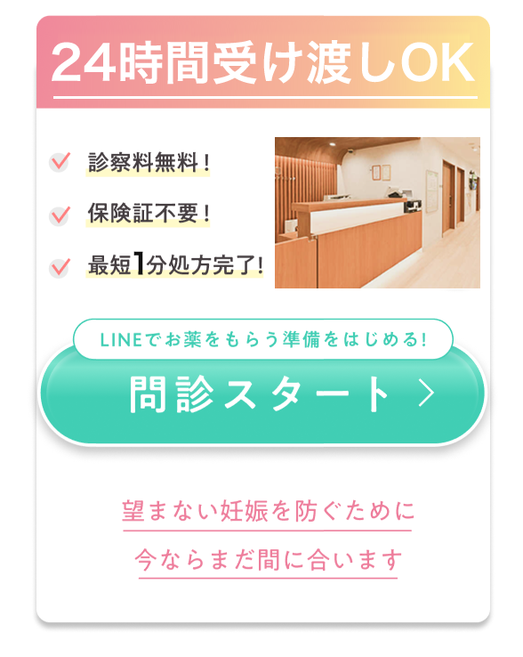 またアフターピルの受け渡しは24時間対応しており、真夜中や早朝などでお困りのときにもすぐご利用いただけます。